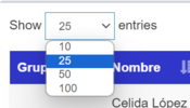Show entries: Nos permite seleccionar, en un menú desplegable, la cantidad de búsquedas guardadas a mostrar en el listado